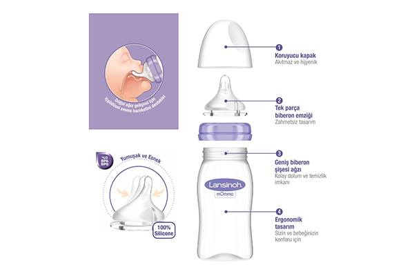 - Các núm ti NaturalWave có thể hoán đổi với các loại bình sữa Lansinoh mOmma.