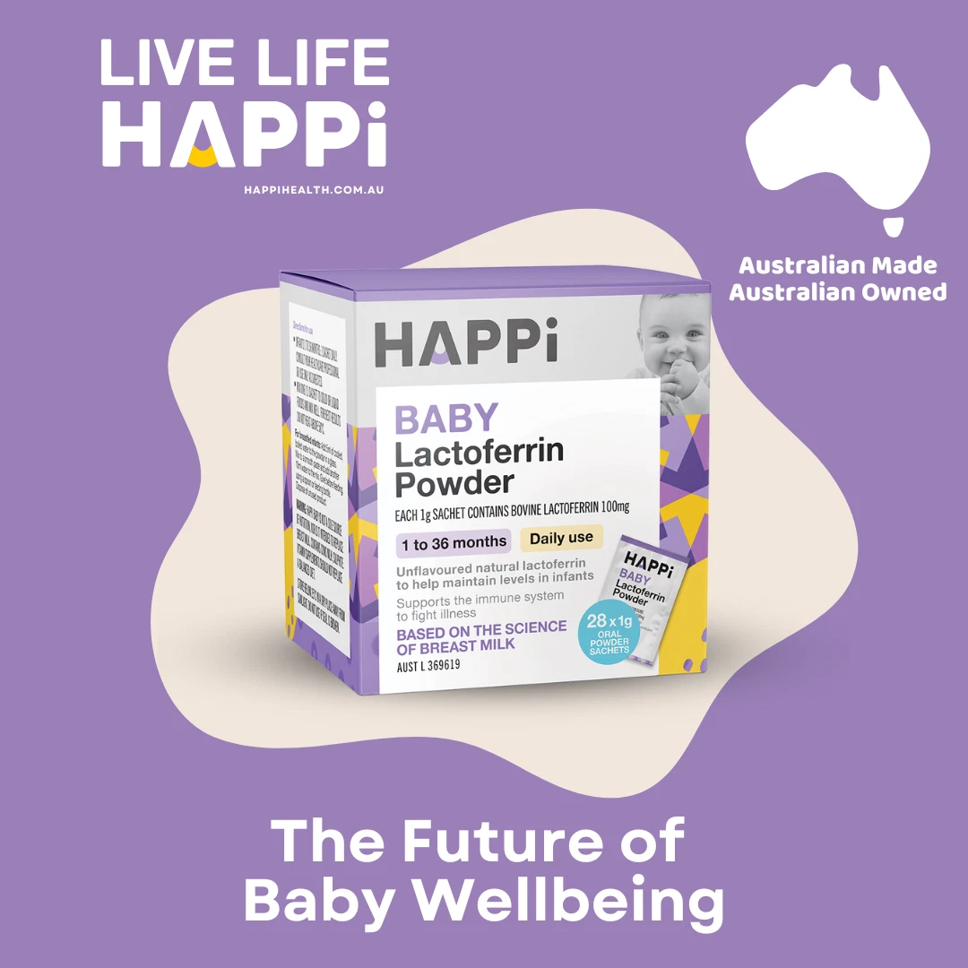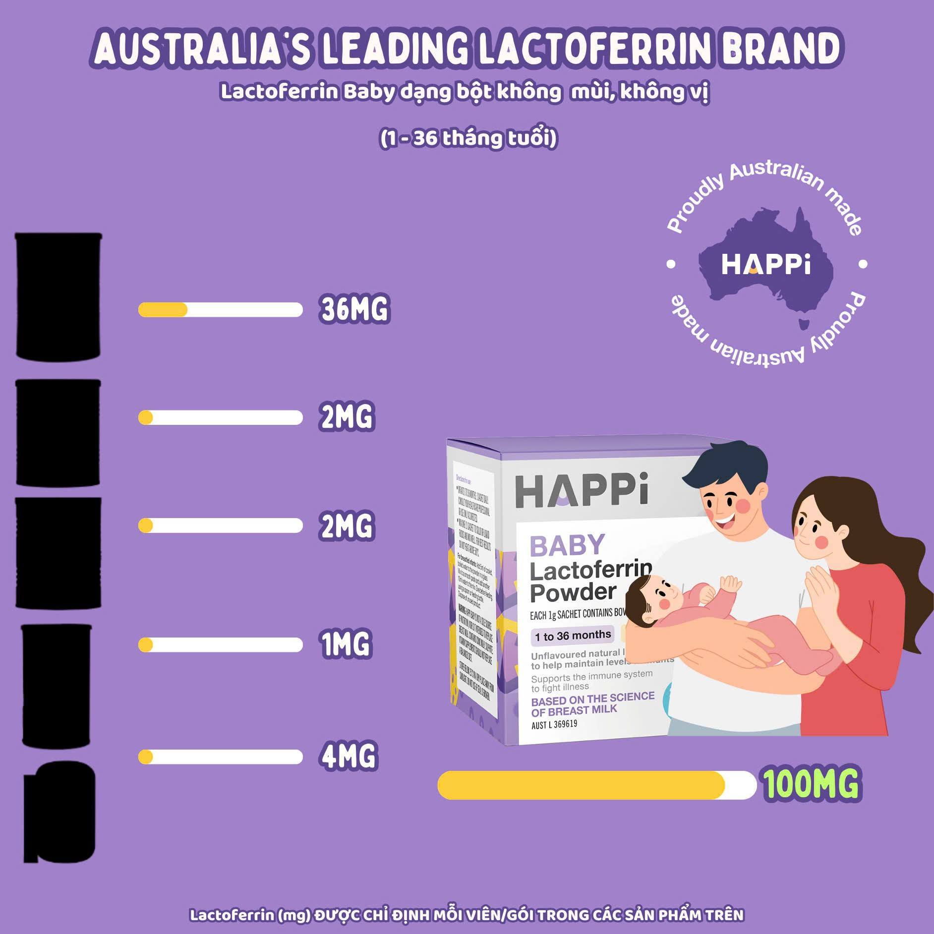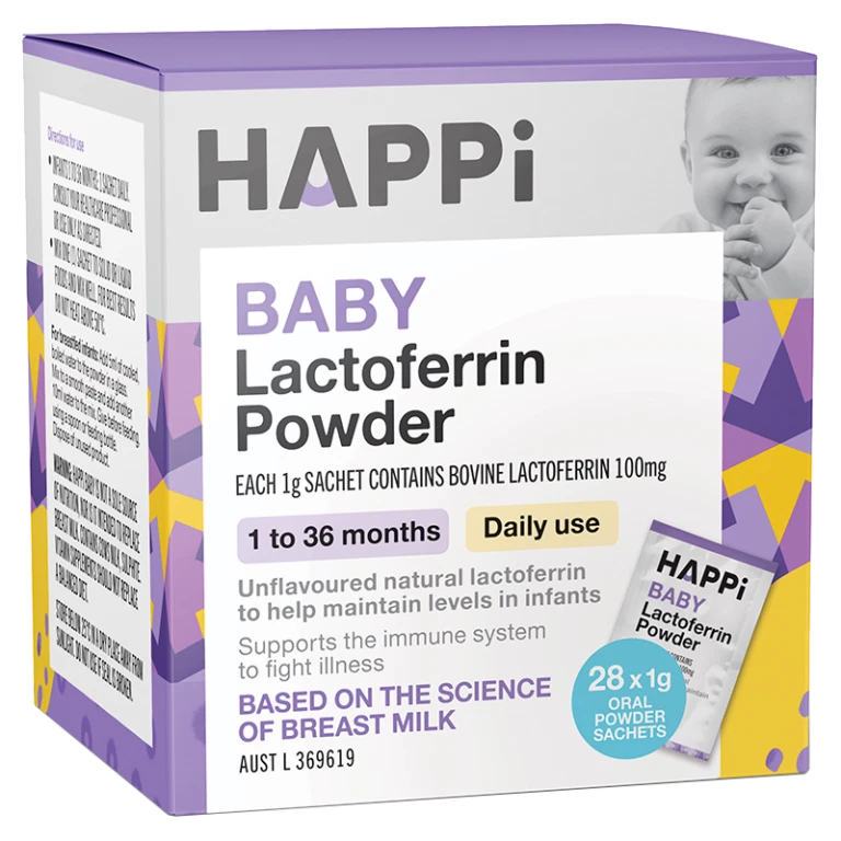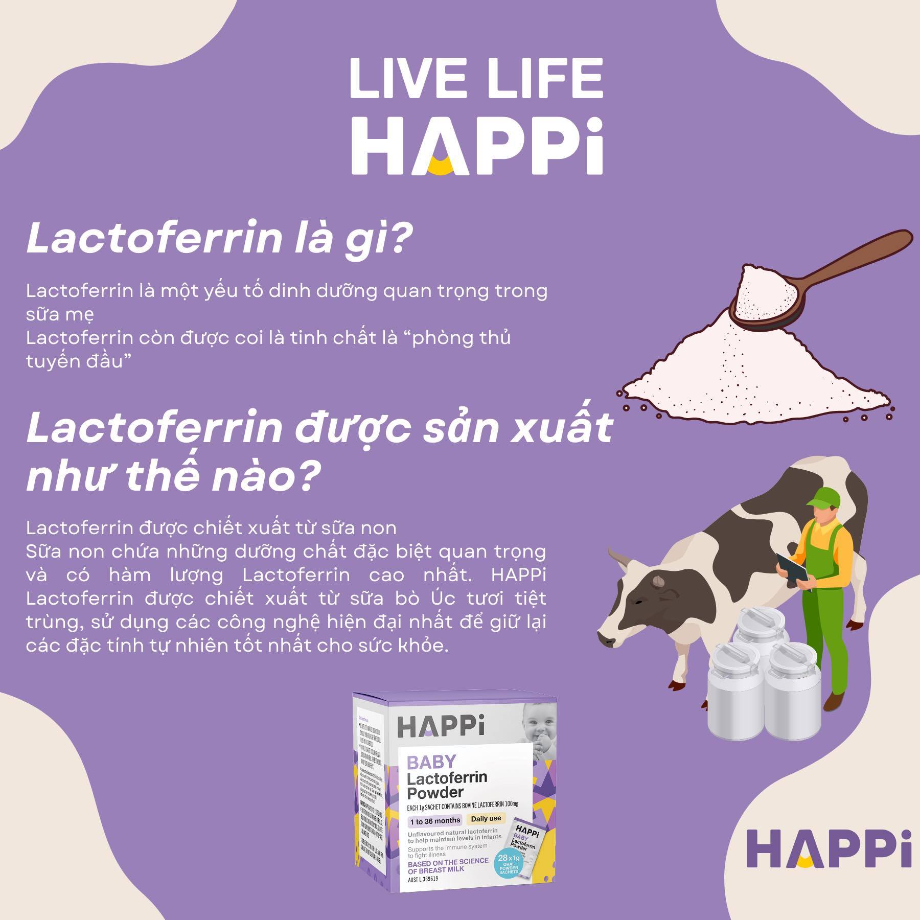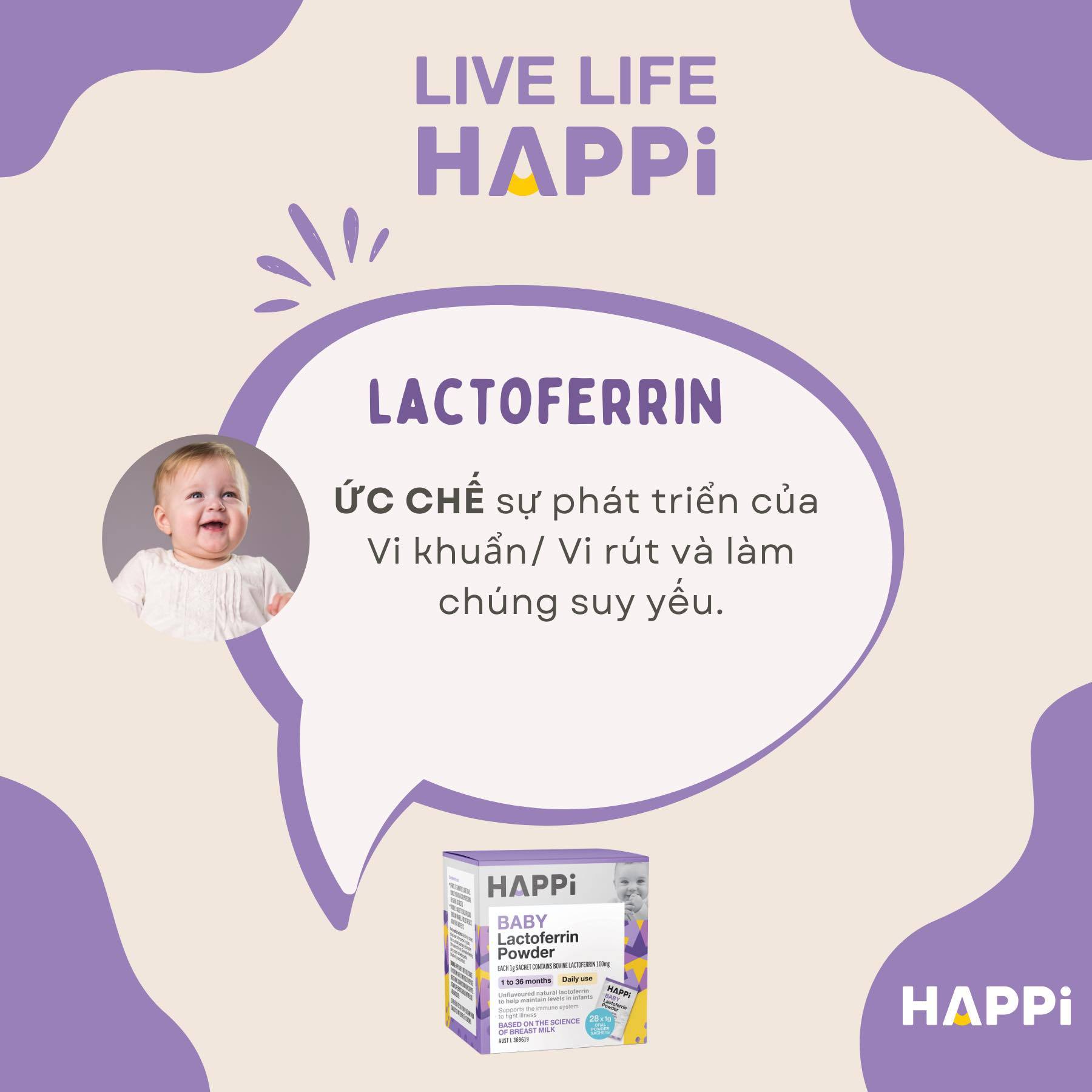 Meta Description: Happi Baby Lactoferrin Powder 28g – Bột dinh dưỡng trẻ sơ sinh từ Úc, bổ sung lactoferrin tăng miễn dịch, hỗ trợ tiêu hóa, phát triển trí não cho trẻ 1-36 tháng. Mua chính hãng tại MumBabyTuDu.vn, giao nhanh TP HCM!