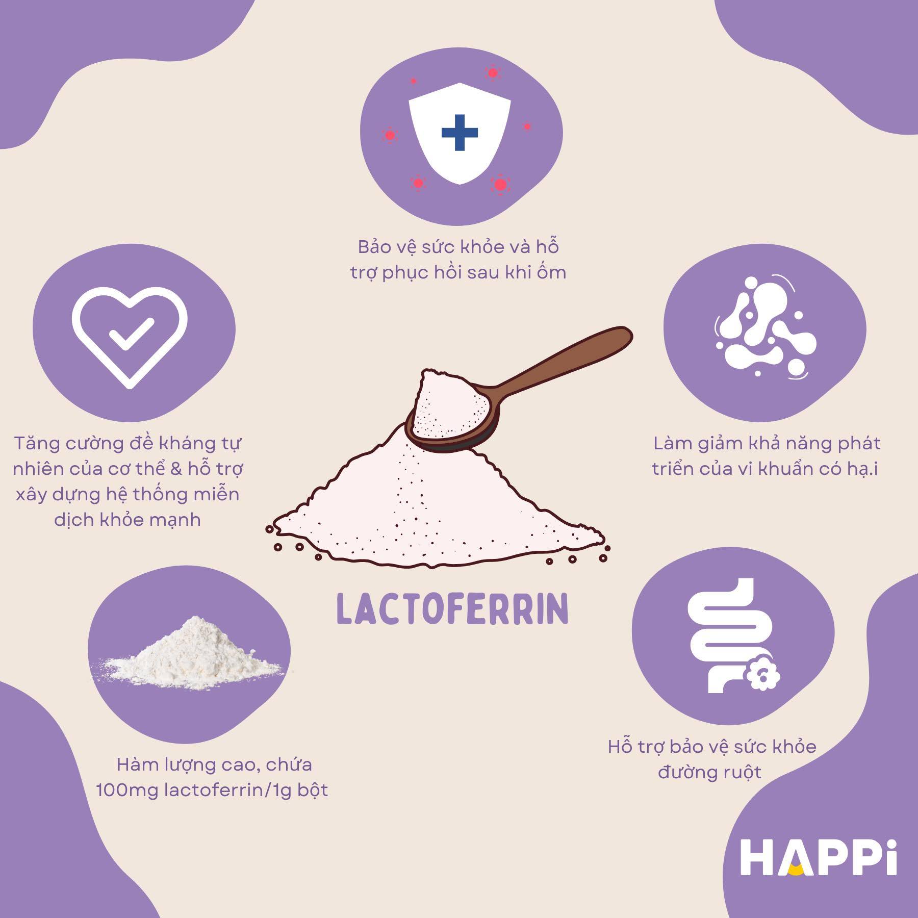 Từ khóa phụ: Infographic Happi Baby Lactoferrin, lợi ích bột dinh dưỡng trẻ sơ sinh, bột lactoferrin cho bé, bột không dung nạp lactose.
