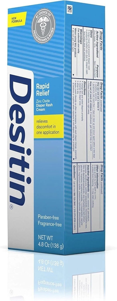 Công thức Zinc Oxide 13% độc quyền Desitin giúp tạo lớp bảo vệ da, không paraben, không phthalate – an toàn cho da bé nhạy cảm. Sản phẩm được chứng nhận phù hợp cho trẻ sơ sinh, không gây dị ứng.