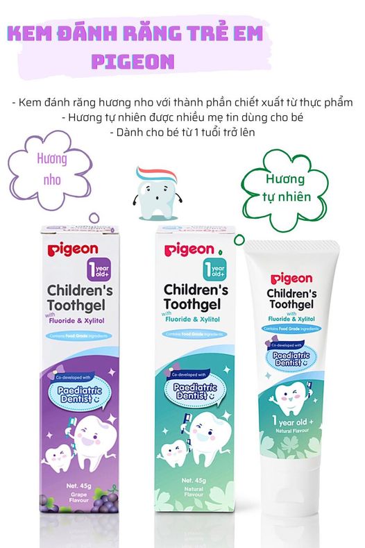 Kem đánh răng trẻ em Pigeon hương nho / hương tư nhiên 45g (1+) với ưu điểm