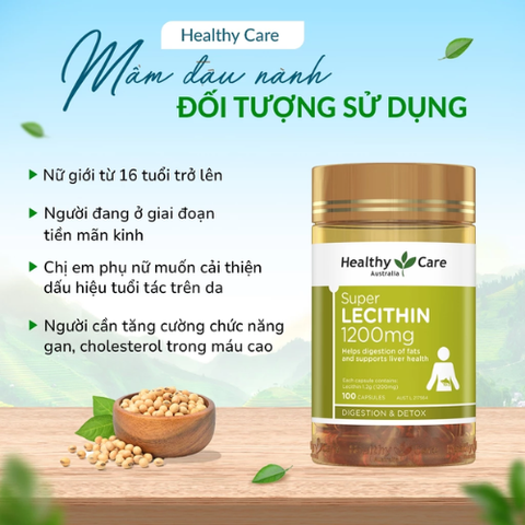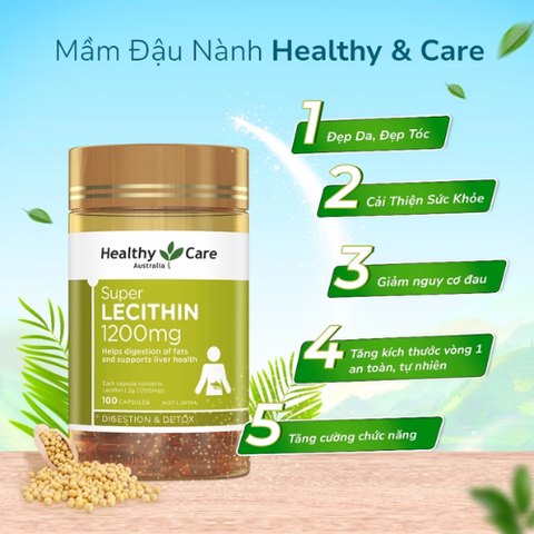 Viên uống Super Lecithin Healthy Care 100 viên của Úc bổ sung Lecithin từ đậu nành tự nhiên, giúp tăng cường sức khỏe tổng thể và làm đẹp từ bên trong.