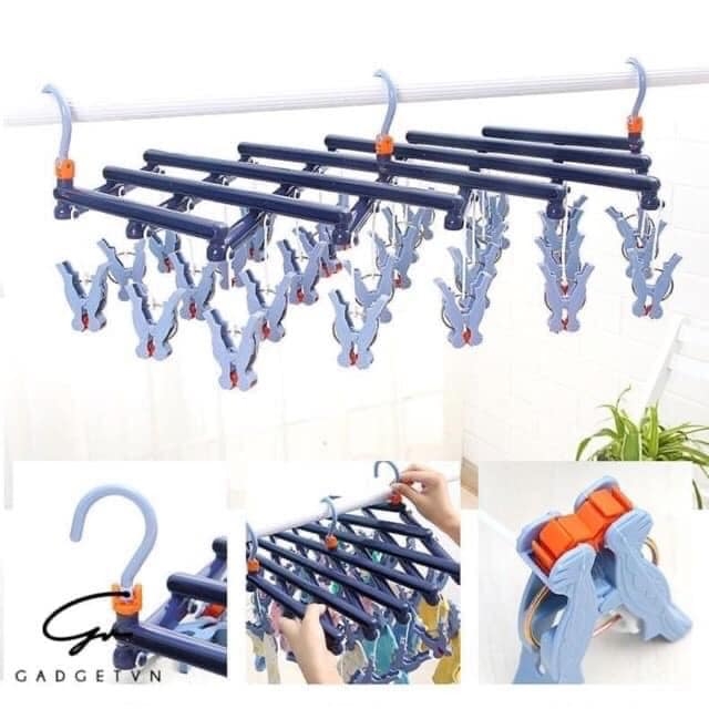 Móc phơi đồ với 29 kẹp đan xen nhau phù hợp phơi những đồ nhỏ như tất, đồ lót, quần áo trẻ em,...