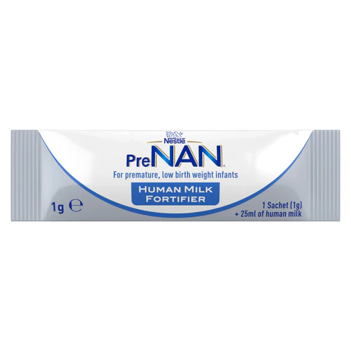 Nestlé PreNAN HMF là bột tăng cường sữa mẹ (Human Milk Fortifier - HMF) dạng gói 1g, hộp 72 gói, được sản xuất bởi Nestlé Health Science (Thụy Sĩ) – thương hiệu hàng đầu về dinh dưỡng y học. Sản phẩm không phải sữa công thức thay thế mà là thực phẩm y tế đặc biệt, bổ sung trực tiếp vào sữa mẹ để bù đắp thiếu hụt dưỡng chất, giúp sữa mẹ đạt tiêu chuẩn dinh dưỡng cao cho trẻ sinh non (trước 37 tuần), nhẹ cân (dưới 2.5kg) hoặc rất nhẹ cân (dưới 1.5kg). Dạng bột gói riêng lẻ đảm bảo vệ sinh, dễ sử dụng trong bệnh viện hoặc tại nhà, giảm nguy cơ nhiễm khuẩn so với dạng lỏng.