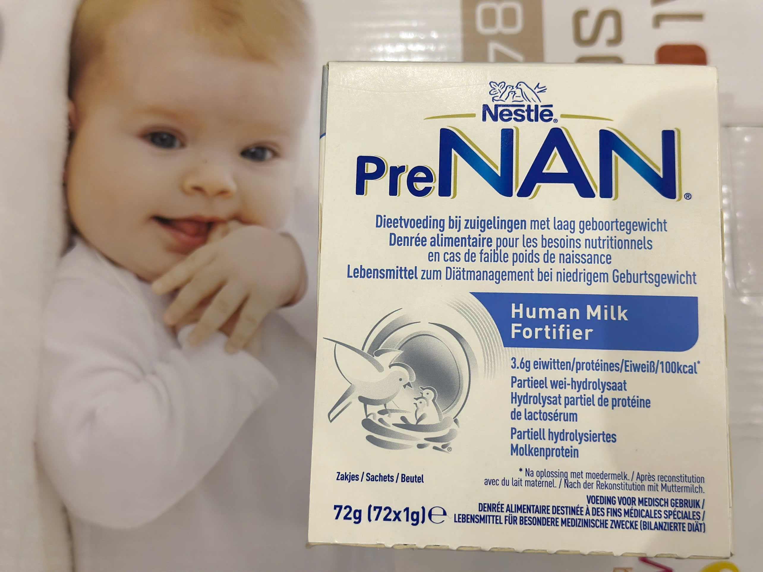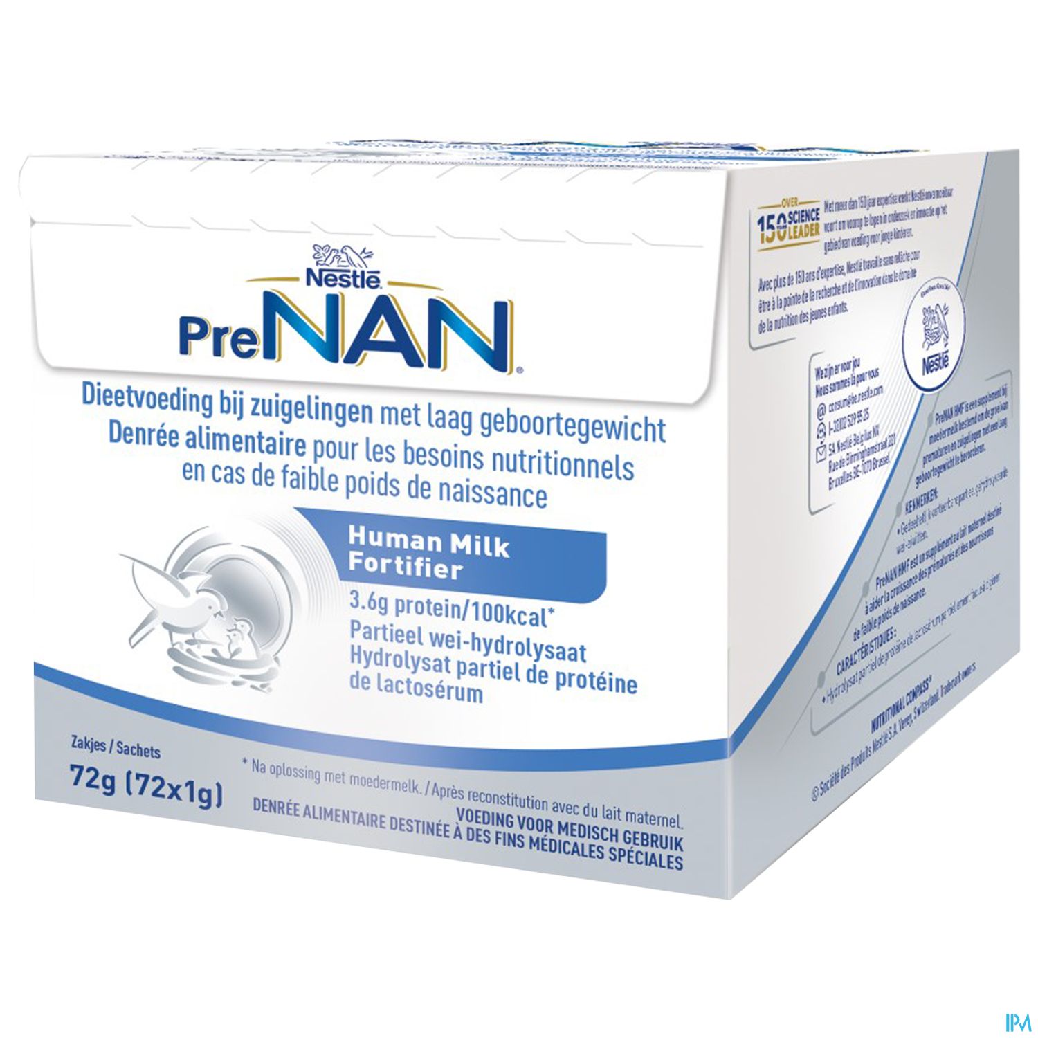 (Hình ảnh: Hộp Nestlé PreNAN HMF 1g x 72 gói chính hãng Nestlé – Alt: Bột bổ sung sữa mẹ Nestlé PreNAN HMF cho trẻ sinh non nhẹ cân thiếu tháng 2025)