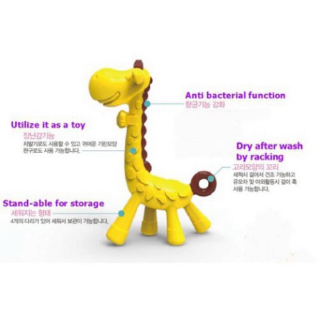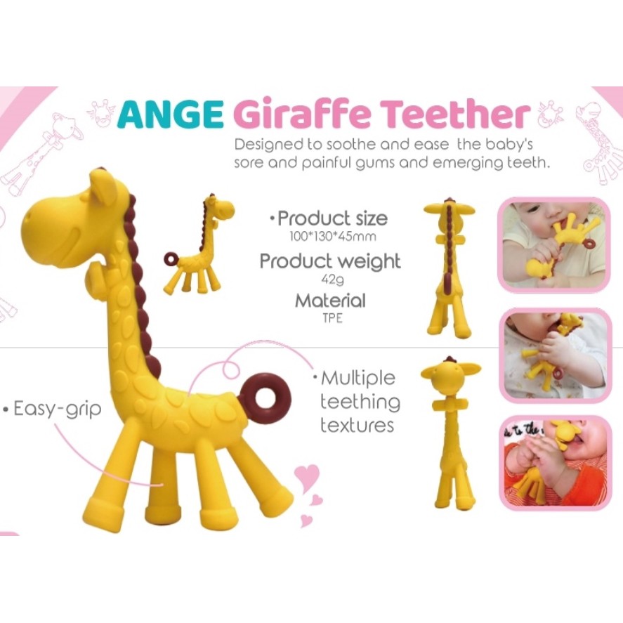 Ngậm nướu Ange hình hươu cao cổ được làm từ chất liệu nhựa TPE mềm, không có BPA, có tính năng kháng khuẩn, đảm bảo an toàn cho bé. Bề mặt được thiết kế các đường khối tạo độ sần khác nhau hỗ trợ mát xa nướu lợi, mang lại cảm giác dễ chịu cho bé trong giai đoạn mọc răng. Sản phẩm với hình động vật dễ thương vừa là món đồ chơi thân thiết, vừa giúp bé vượt qua giai đoạn mọc răng dễ dàng, hiệu quả.