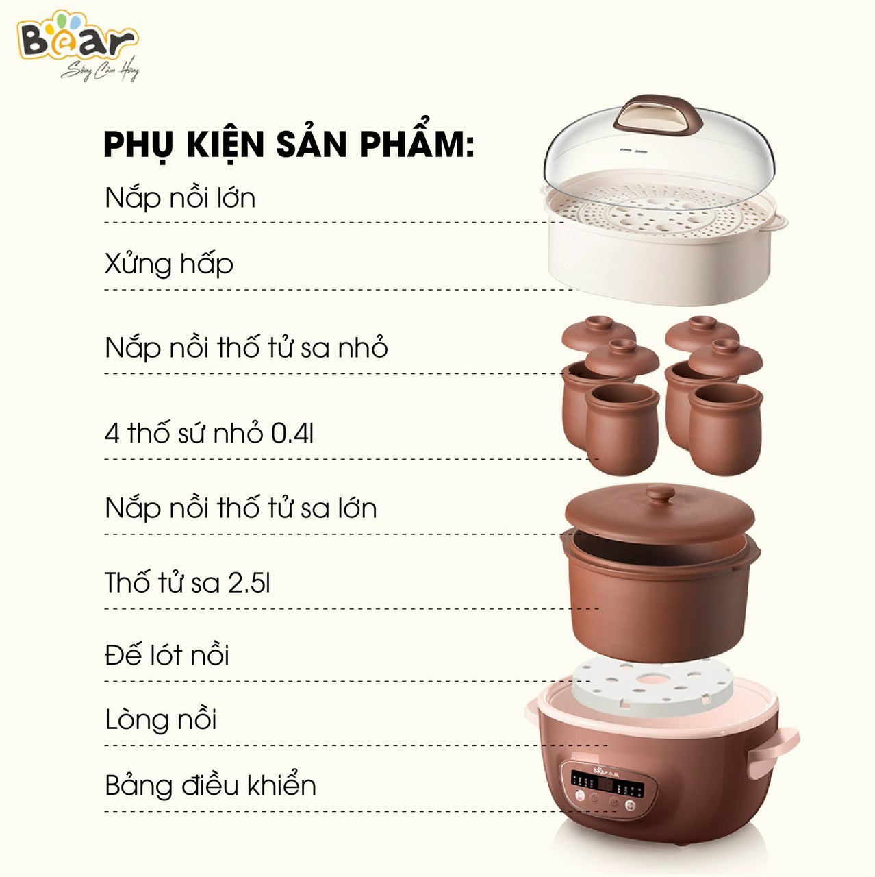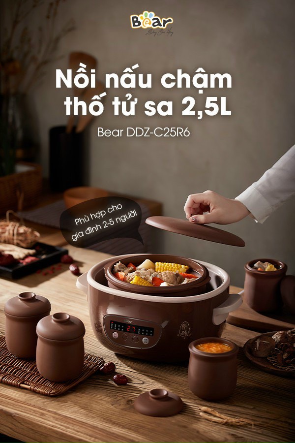 Nồi nấu chậm Bear 2.5L DDZ-C25R6 thố đất tử sa (Bản quốc tế)