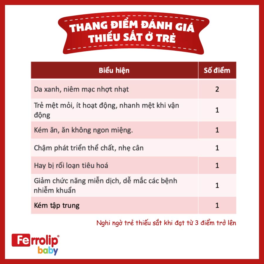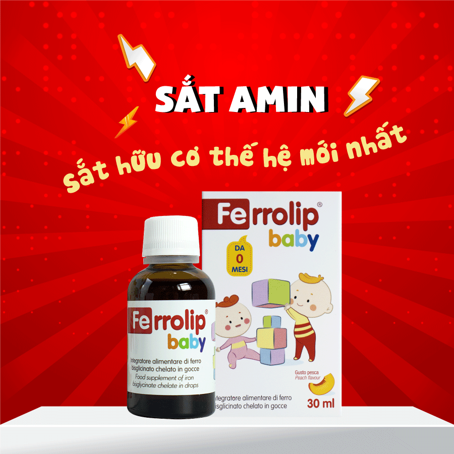 Ferrolip BaBy: Sắt Amin chuẩn châu Âu cho bé. Sắt có sinh khả dụng cao, an toàn, thơm ngon dễ uống. Ferrolip Baby là lựa chọn hàng đầu giúp ngăn ngừa thiếu máu do thiếu sắt ở trẻ.