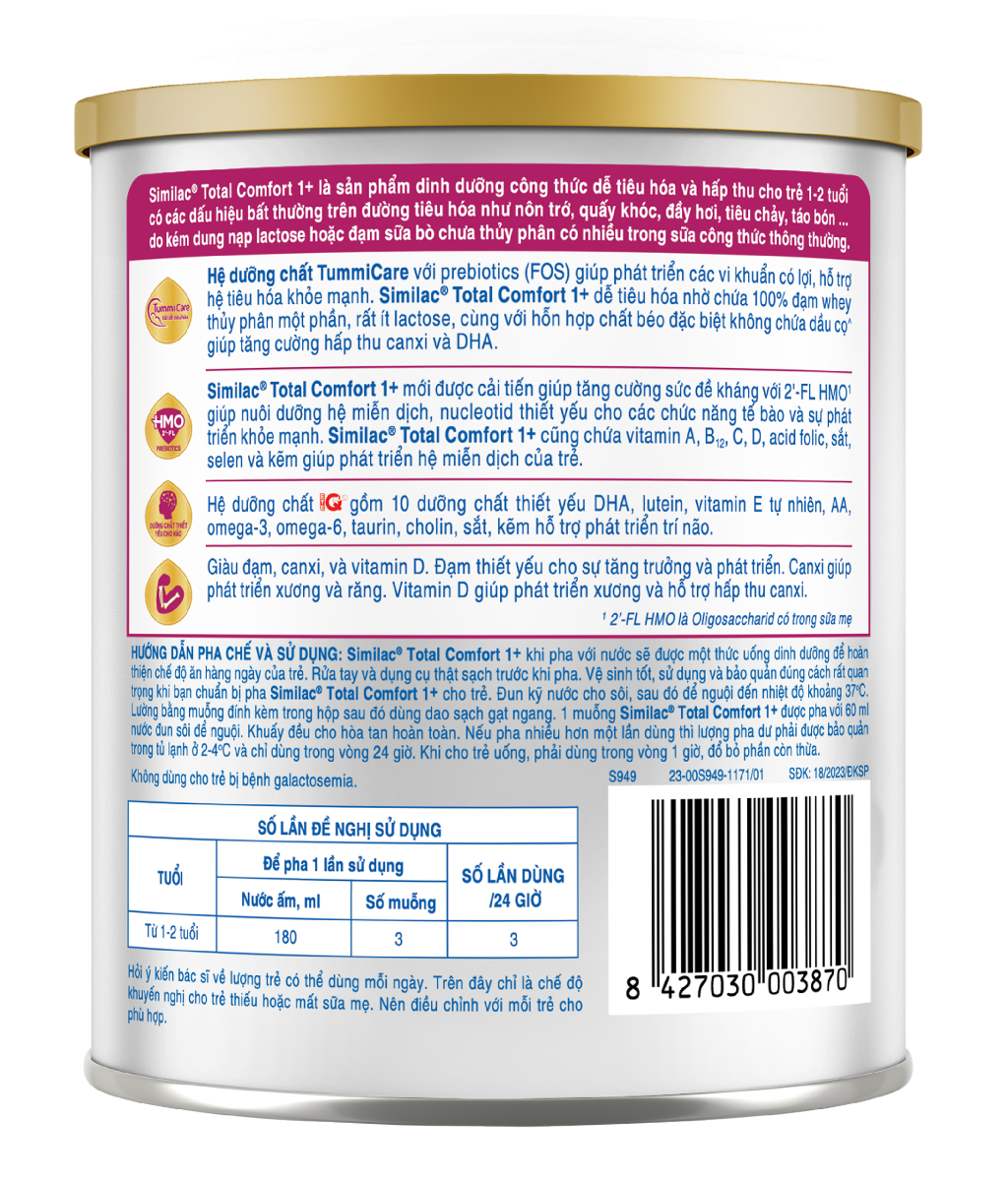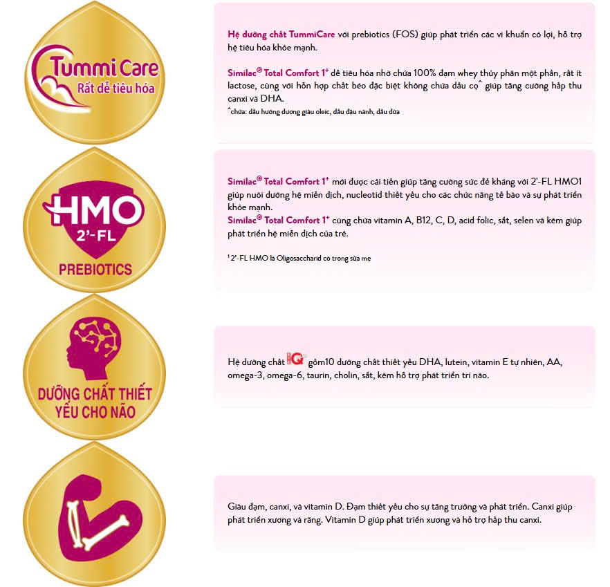 Từ khóa phụ: Lợi ích sữa Similac Total Comfort 1+, sữa cho trẻ 1-2 tuổi dễ tiêu hóa, sữa giảm nôn trớ quấy khóc đầy hơi, sữa cho trẻ kém dung nạp lactose, sữa cho trẻ đạm sữa bò chưa thủy phân.