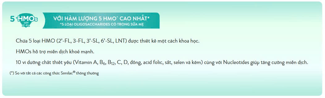 | Thành phần nổi bật | 5 HMO prebiotics, DHA/ARA | DHA, Choline, HuMO6 Immune Blend |