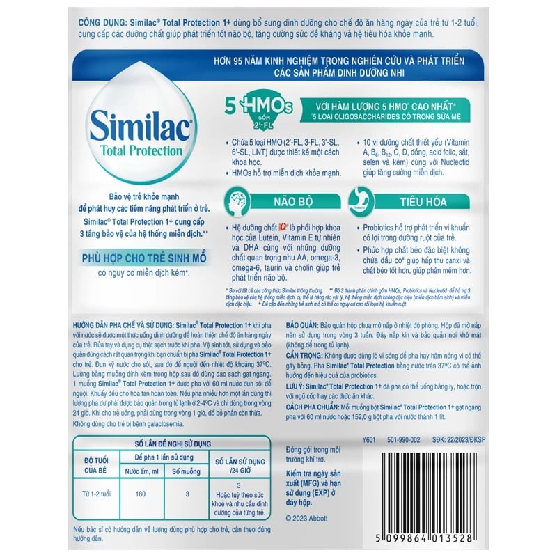 Từ khóa phụ: Cách pha sữa Similac Total Protection 1+ 800g, hướng dẫn sử dụng sữa tăng cường miễn dịch cho trẻ 1+ tuổi, bảo quản sữa cho trẻ 1 tuổi trở lên, sữa Abbott cho trẻ 1+ tuổi, sữa 5 HMO prebiotics.