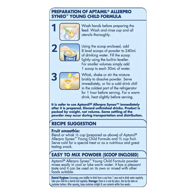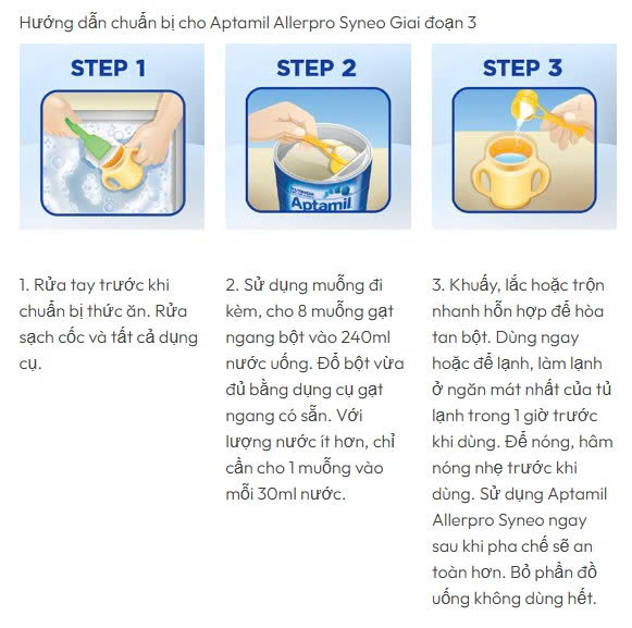 Từ khóa rộng: Cách dùng sữa Aptamil AllerPro Syneo Số 3, hướng dẫn sữa hipoallegenic cho bé dị ứng đạm sữa bò 12-36 tháng, bảo quản Aptamil AllerPro Syneo tăng cân.