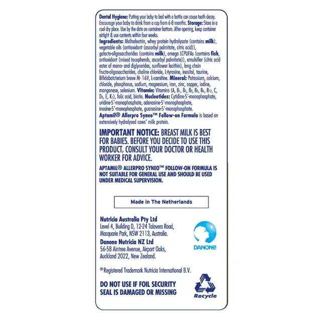 Từ khóa rộng: Sữa Aptamil AllerPro Syneo Số 3 có tốt không, sữa hipoallegenic cho bé dị ứng đạm sữa bò 12-36 tháng giá 2026, cách dùng Aptamil AllerPro Syneo cho bé ăn dặm, Aptamil chính hãng.