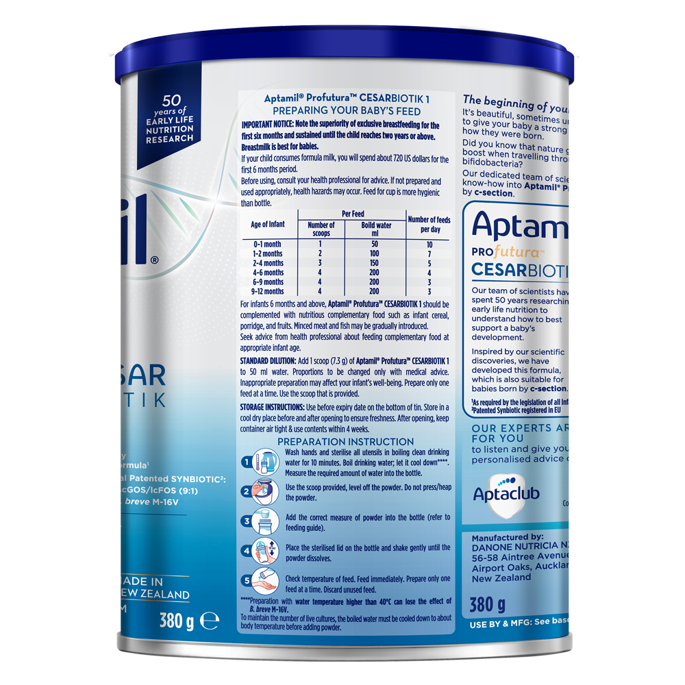 Caption: Sữa Aptamil Profutura Cesarbiotik 1 380g – Dinh dưỡng cao cấp cho bé 0-12 tháng, đặc biệt phù hợp trẻ sinh mổ.