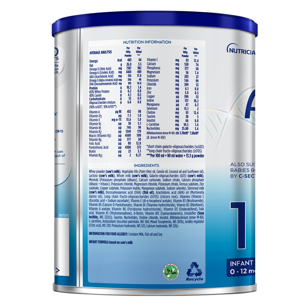 Công thức Synbiotic kết hợp Prebiotics (scGOS/lcFOS 9:1) và Probiotics, thúc đẩy vi khuẩn có lợi, giảm vi khuẩn có hại, hỗ trợ hệ miễn dịch non nớt của trẻ sơ sinh.