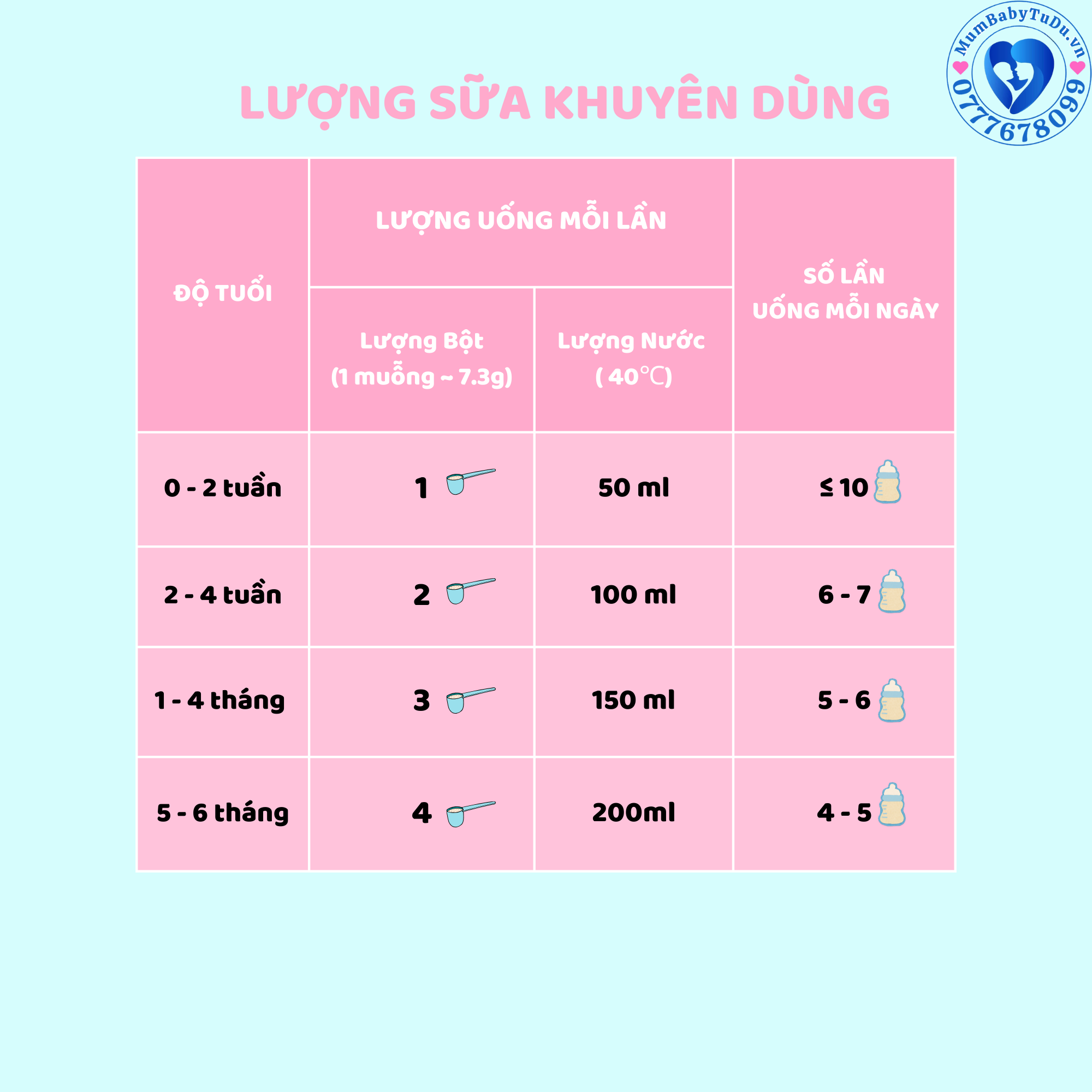 Lượng sữa được cung cấp ở bảng hướng dẫn chỉ là thông số tham khảo, bố mẹ nên cân nhắc điều chỉnh theo nhu cầu dinh dưỡng và sự phát triển của cơ thể bé.