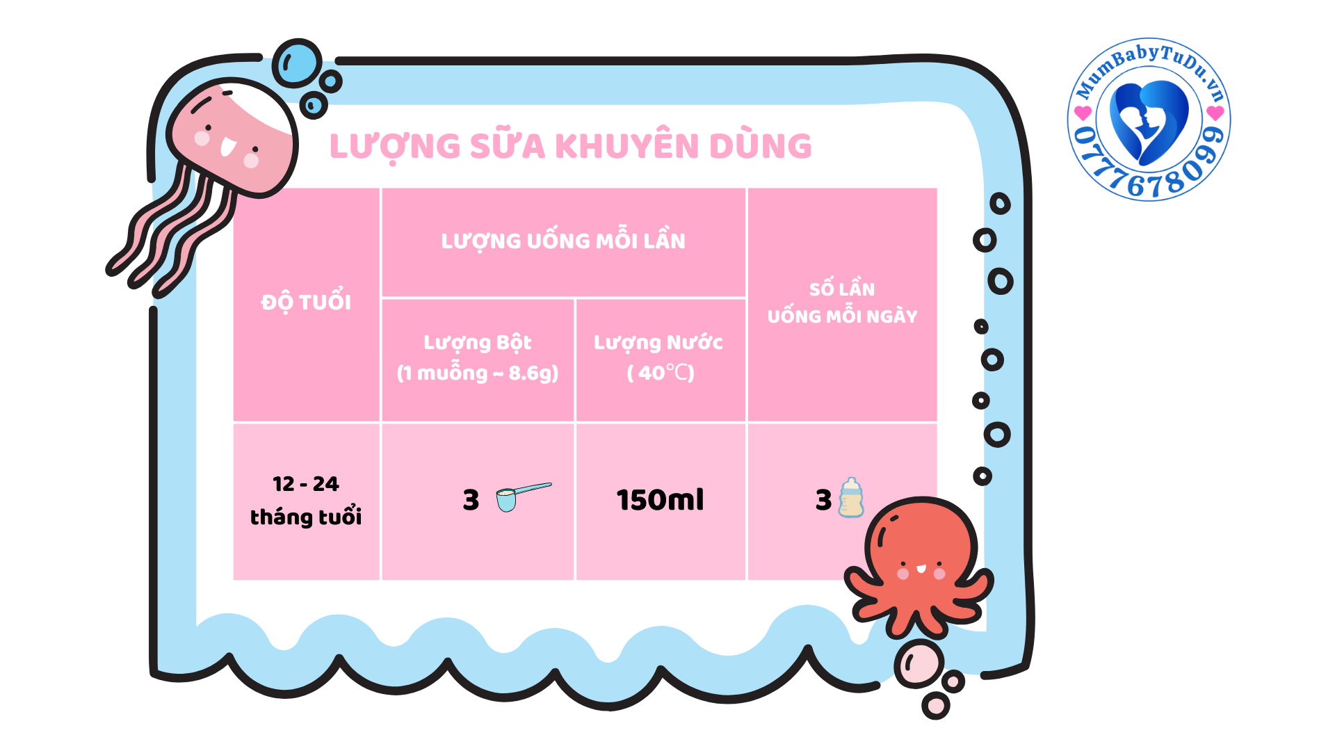 Thông tin ở bảng là lượng trung bình tham khảo, phụ huynh có thể cân nhắc điều chỉnh lượng sữa uống tùy vào nhu cầu dinh dưỡng và sự phát triển của bé nhà mình.