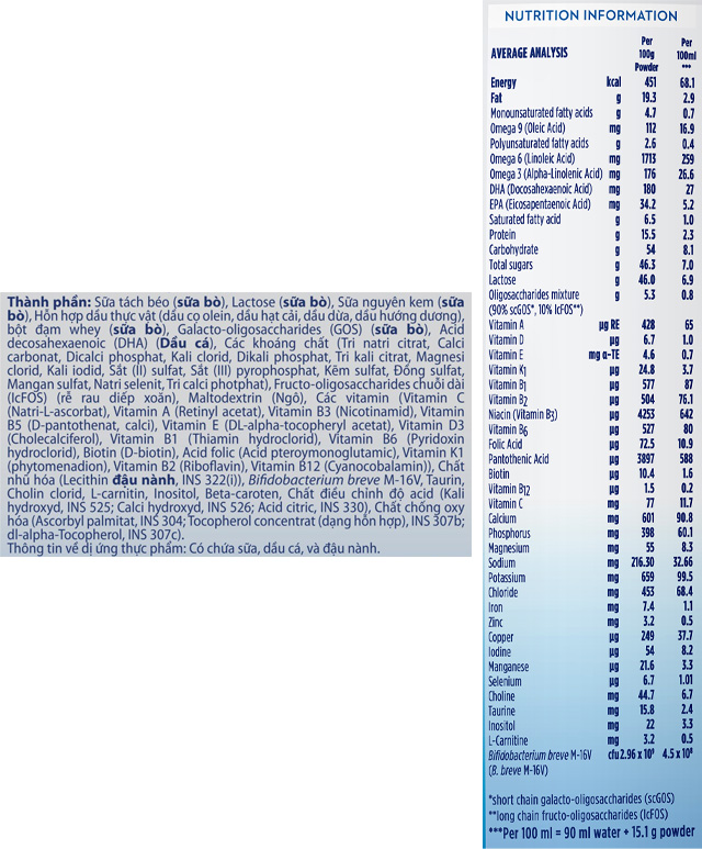 - GOS/FOS Prebiotics: Tăng cường lợi khuẩn đường ruột.