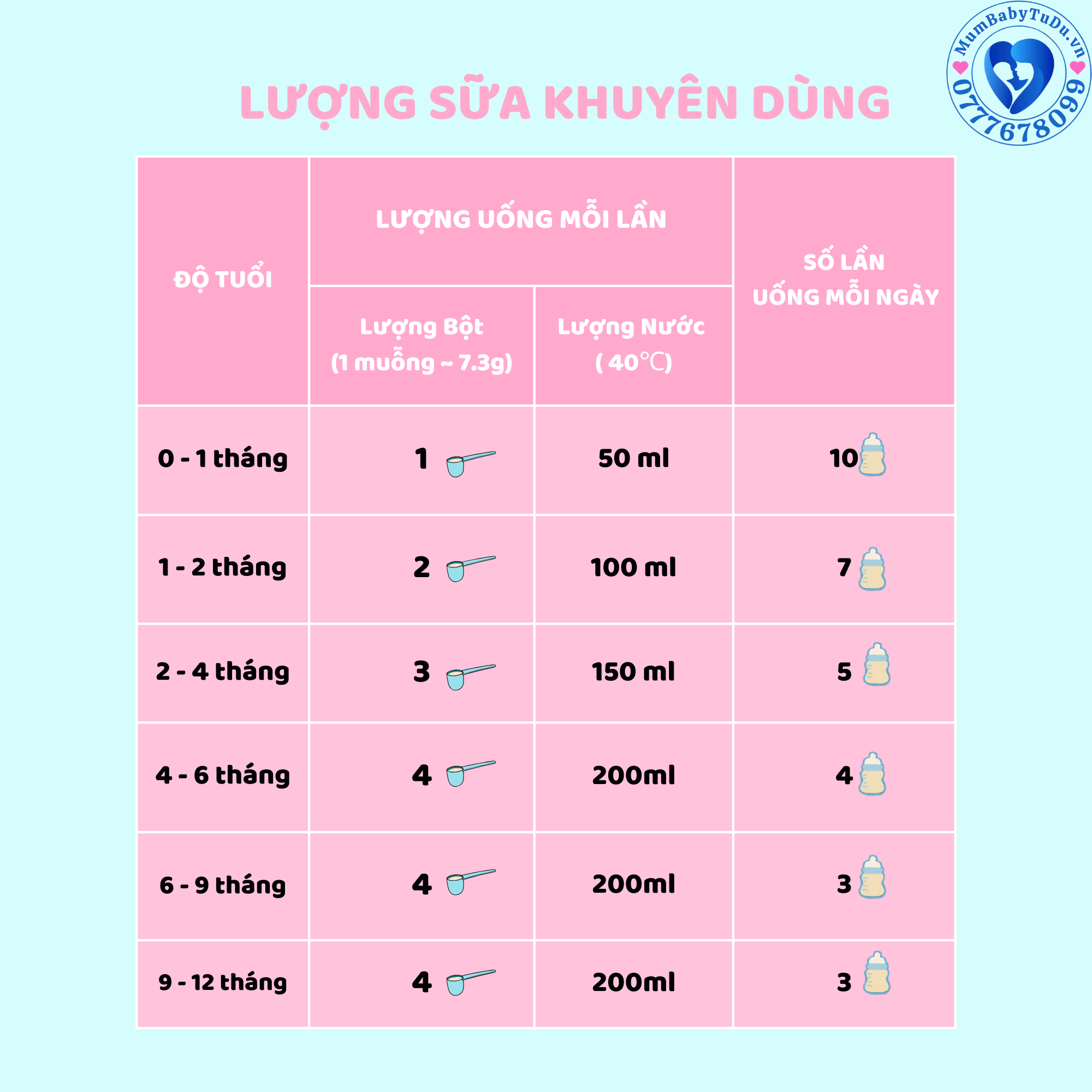 Thông tin ở bảng là lượng trung bình tham khảo, phụ huynh có thể cân nhắc điều chỉnh lượng sữa uống tùy vào nhu cầu dinh dưỡng và sự phát triển của bé nhà mình.