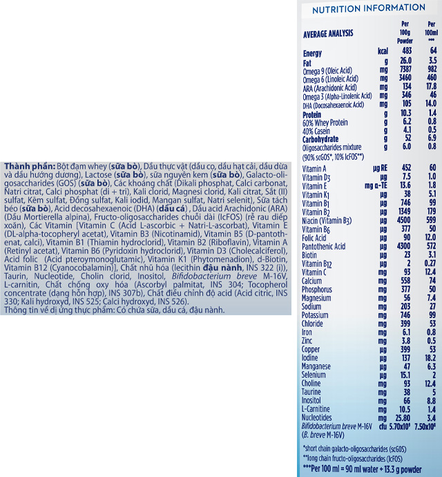- GOS/FOS Prebiotics: Tăng cường lợi khuẩn đường ruột.
