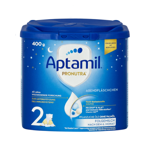 Sữa Aptamil Pronutra Uống Đêm hộp 400g là dòng sữa công thức đặc biệt nội địa Đức, dành cho bé trên 6 tháng tuổi. Sản phẩm được nghiên cứu nhằm hỗ trợ giấc ngủ sâu hơn, giúp bé ngon giấc, tăng cường hệ miễn dịch và phát triển toàn diện.