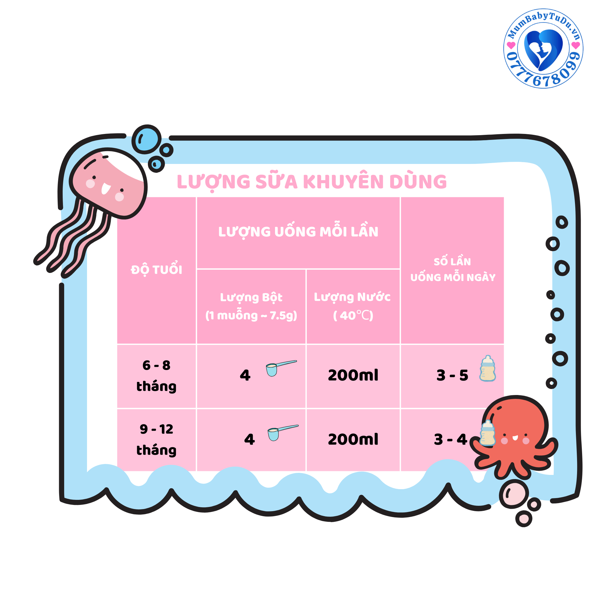 - Công thức tiên tiến dành riêng cho bé từ 6-12 tháng: Hỗ trợ phát triển não bộ, miễn dịch và tiêu hóa.
