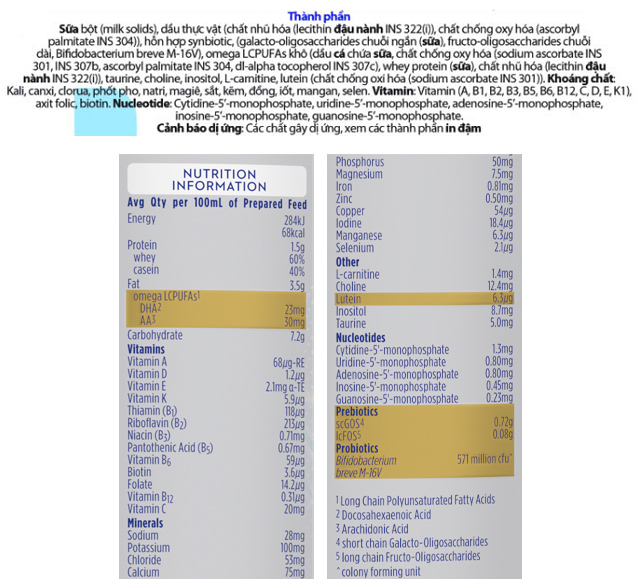- DHA & ARA: Hỗ trợ phát triển não bộ và thị giác.