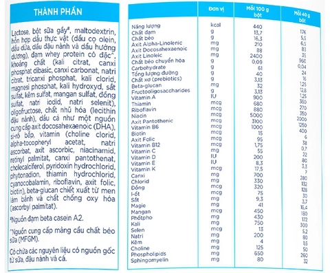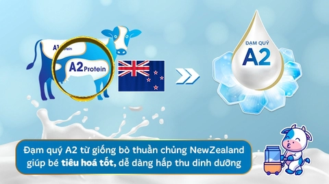 Sử dụng 100% đạm A2 từ nguồn sữa chọn lọc, giúp bé hấp thu dễ dàng và giảm nguy cơ rối loạn tiêu hóa.