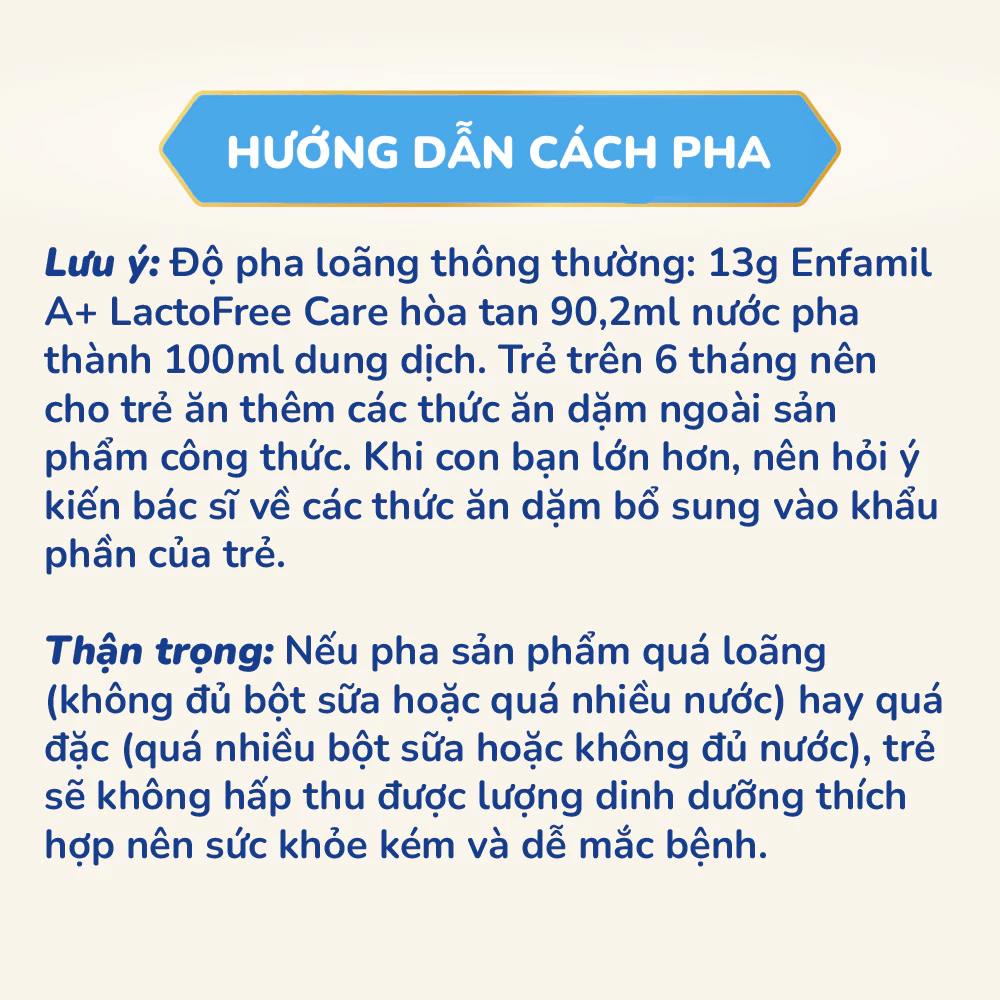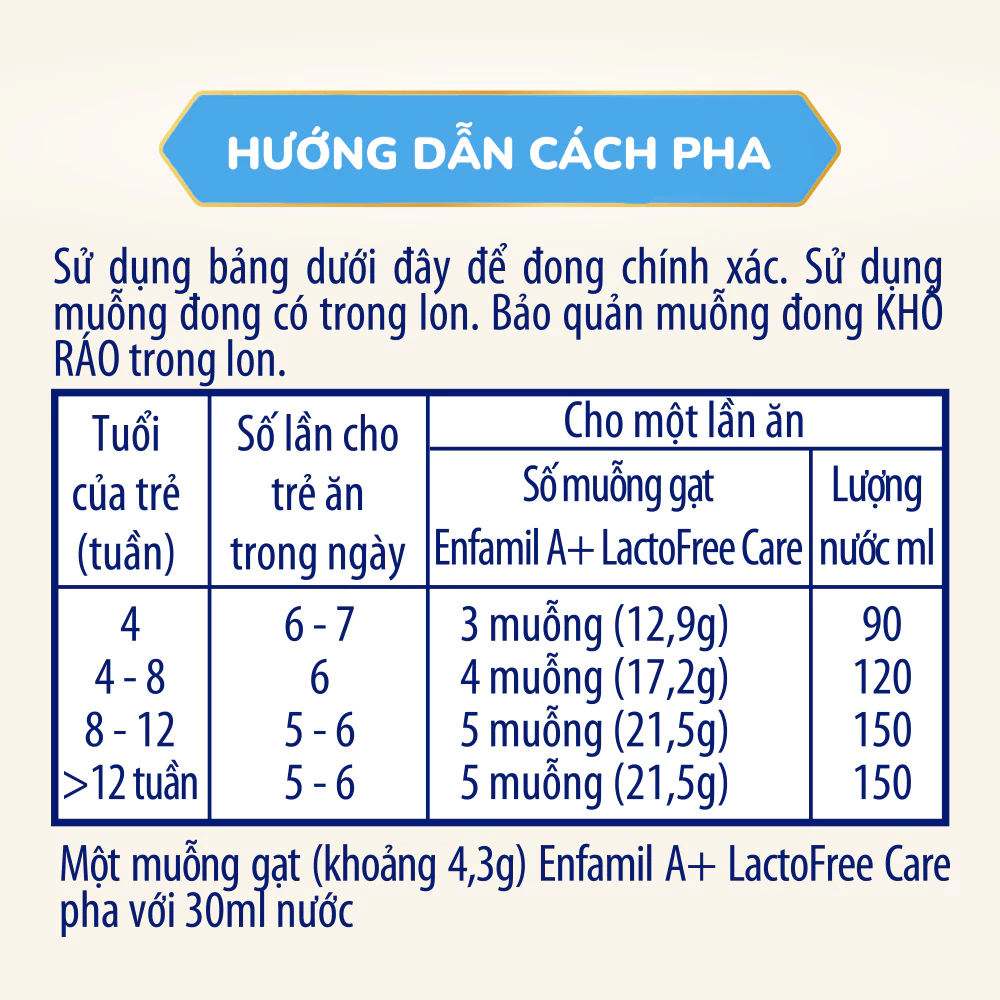 Từ khóa rộng: Cách dùng sữa bột Enfamil A+ Lactofree, hướng dẫn sữa không lactose cho bé 0-12 tháng, bảo quản Enfamil A+ Lactofree tăng cân.