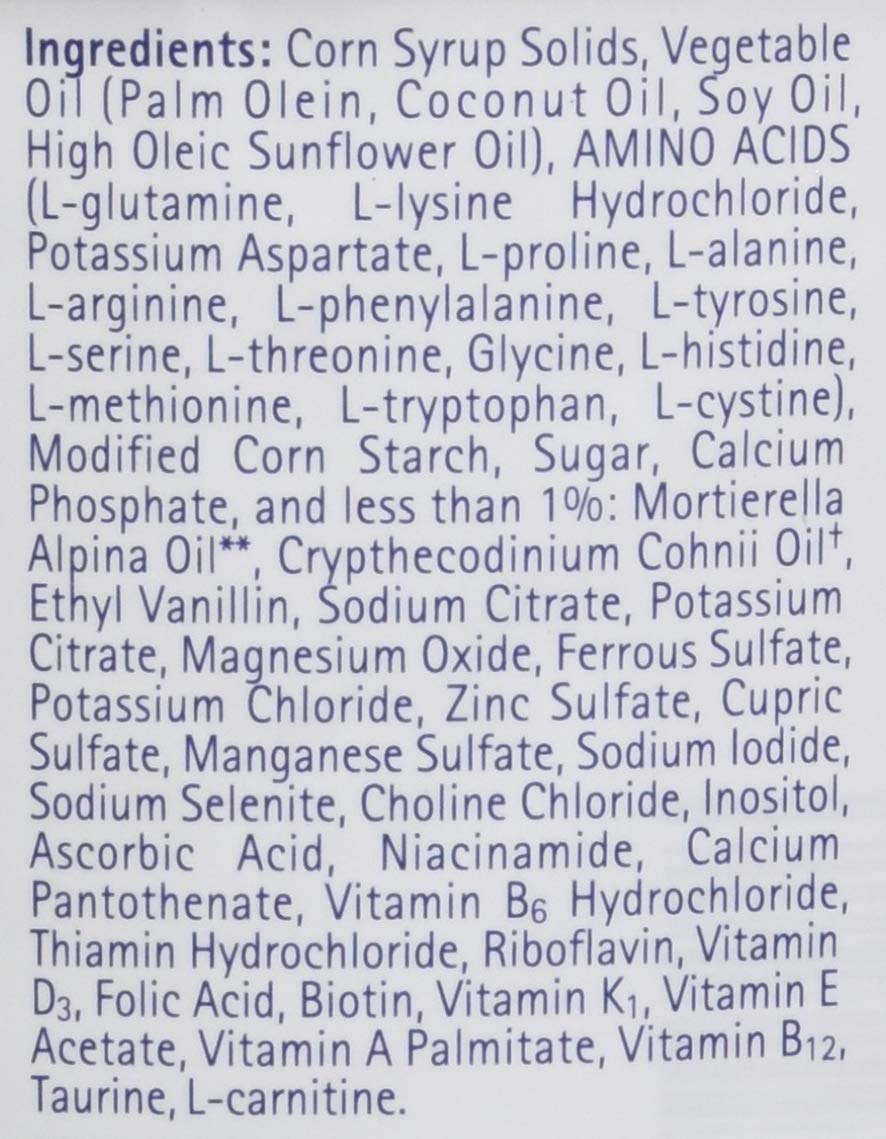 Đáp ứng tiêu chuẩn Hoa Kỳ: Lượng vitamin và khoáng chất phù hợp với Đạo luật sữa công thức dành cho trẻ sơ sinh Hoa Kỳ (trên 100 calo).
