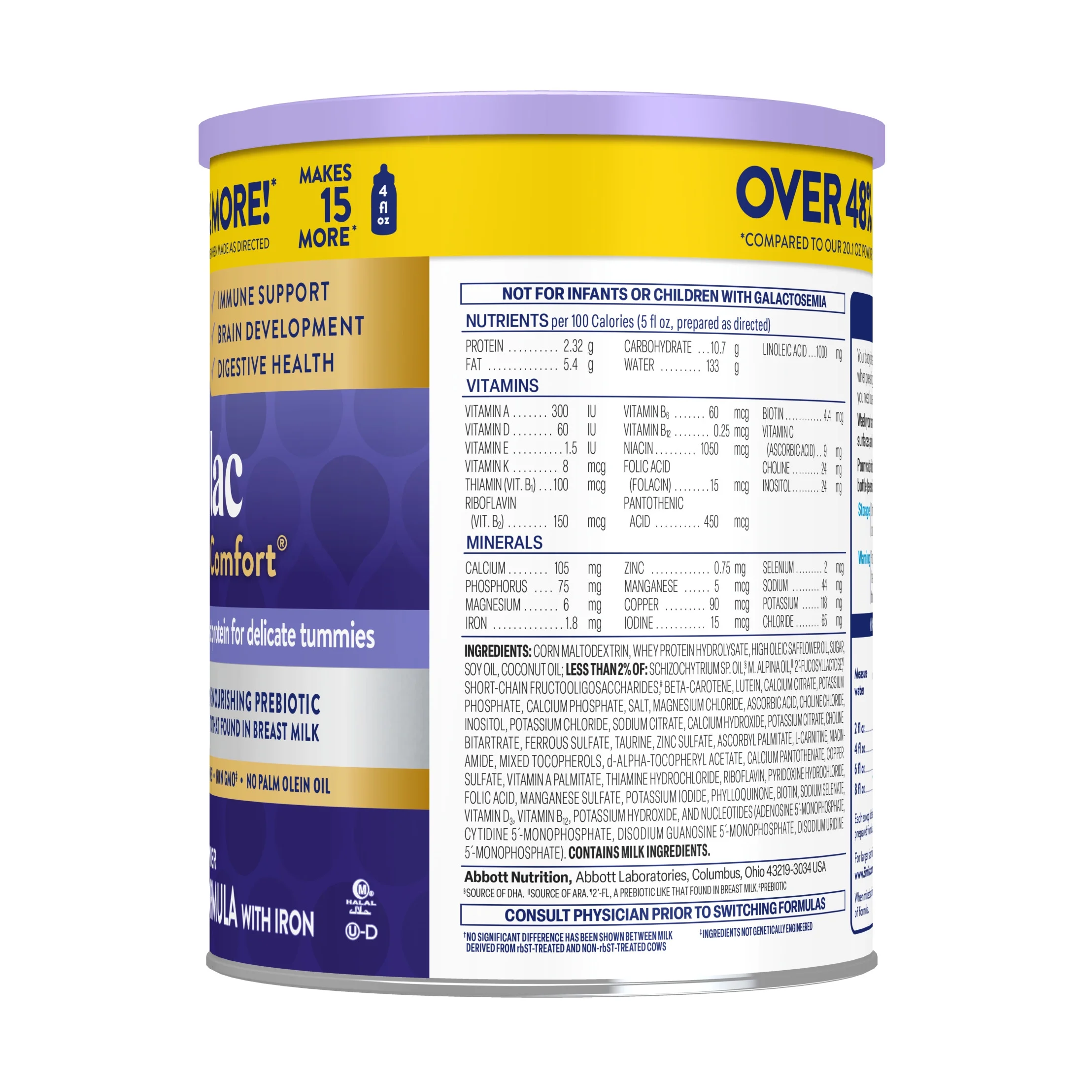 Sữa công thức Similac Pro-Total Comfort là sữa dịu nhẹ cho bé sơ sinh cao cấp từ Abbott (Mỹ, hơn 130 năm uy tín, sản xuất tại Mỹ), dành cho trẻ từ 0-12 tháng có hệ tiêu hóa nhạy cảm, không dung nạp lactose nhẹ. Với công thức Pro-Total Comfort độc quyền (2'-FL HMO prebiotic nuôi dưỡng miễn dịch tương tự sữa mẹ, protein whey thủy phân một phần, DHA/ARA, prebiotics, probiotics), sản phẩm giúp giảm đầy hơi, quấy khóc, nôn trớ 70% sau 1-2 tuần, tăng cường miễn dịch, phát triển trí não, và tăng cân chiều cao theo chuẩn WHO. Sữa Similac Pro-Total Comfort không chứa hormone tăng trưởng nhân tạo, không GMO, không kháng sinh, hương vani tự nhiên thơm ngon, dễ uống, là thương hiệu sữa số 1 được sử dụng trong các bệnh viện, tin dùng bởi hàng triệu mẹ Việt, Mỹ. Đây là lựa chọn lý tưởng cho bé sơ sinh nhạy cảm, đặc biệt với bao bì mới 2025 thân thiện môi trường.