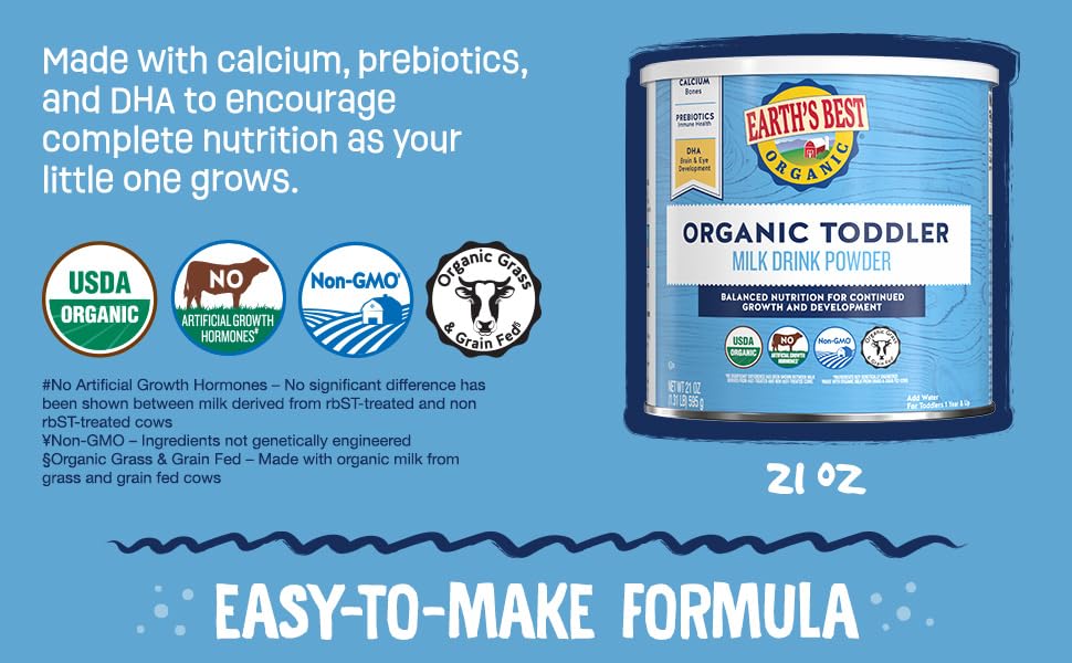 Đánh giá từ phụ huynh: “Tôi chuyển từ sữa công thức sang Earth's Best Toddler 21 oz cho bé 15 tháng tuổi. Bé thích vị vani, không bị táo bón, và tăng cân đều. Rất hài lòng với thành phần hữu cơ!” – Một mẹ trên Amazon.