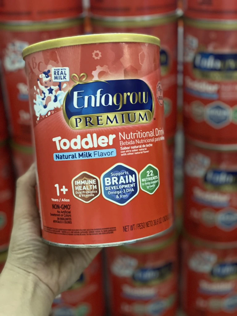 Sữa Enfagrow Premium Non-GMO Toddler Next Step 1.04kg là thức uống dinh dưỡng công thức cao cấp dành cho trẻ từ 1-3 tuổi, được sản xuất bởi Mead Johnson Nutrition (thuộc tập đoàn Reckitt Benckiser) tại Mỹ. Với công thức Triple Health Guard®, sản phẩm bổ sung Omega-3 DHA, Prebiotics (GOS/PDX), sắt, và 22 dưỡng chất thiết yếu, giúp hỗ trợ phát triển trí não, hệ miễn dịch, tiêu hóa, và tăng trưởng thể chất. Sữa có hương vị sữa tự nhiên, không chứa thành phần biến đổi gen (Non-GMO), đảm bảo an toàn và phù hợp cho trẻ trong giai đoạn tập đi, đặc biệt là trẻ kén ăn hoặc chuyển từ sữa mẹ/sữa công thức sang sữa bò. Sản phẩm được khuyến nghị bởi các bác sĩ nhi khoa và là lựa chọn hàng đầu của các bà mẹ trên toàn thế giới.