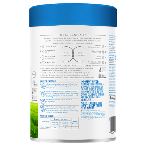 🌟 Bellamy’s Organic Beta Genica-8™ số 3 tiếp tục cung cấp nguồn dinh dưỡng hữu cơ tinh khiết, hỗ trợ bé phát triển toàn diện trong giai đoạn trên 12 tháng.