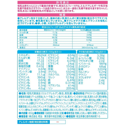 Sữa Meiji HP (Hydrolyzed Protein) là sản phẩm chuyên biệt dành cho bé dị ứng đạm sữa bò, được sản xuất theo tiêu chuẩn nội địa Nhật Bản. Với công thức đạm thủy phân, sữa giúp bé hấp thu dễ dàng hơn mà không gây kích ứng hệ tiêu hóa. Đây là lựa chọn an toàn và khoa học để bé phát triển toàn diện mà vẫn đảm bảo dinh dưỡng đầy đủ.