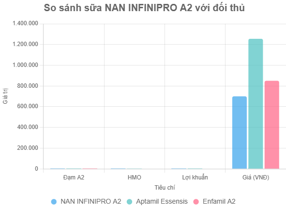 Biểu đồ này giúp mẹ dễ dàng nhận thấy NAN INFINIPRO A2 Số 1 vượt trội về số lượng HMO và giá cả hợp lý.