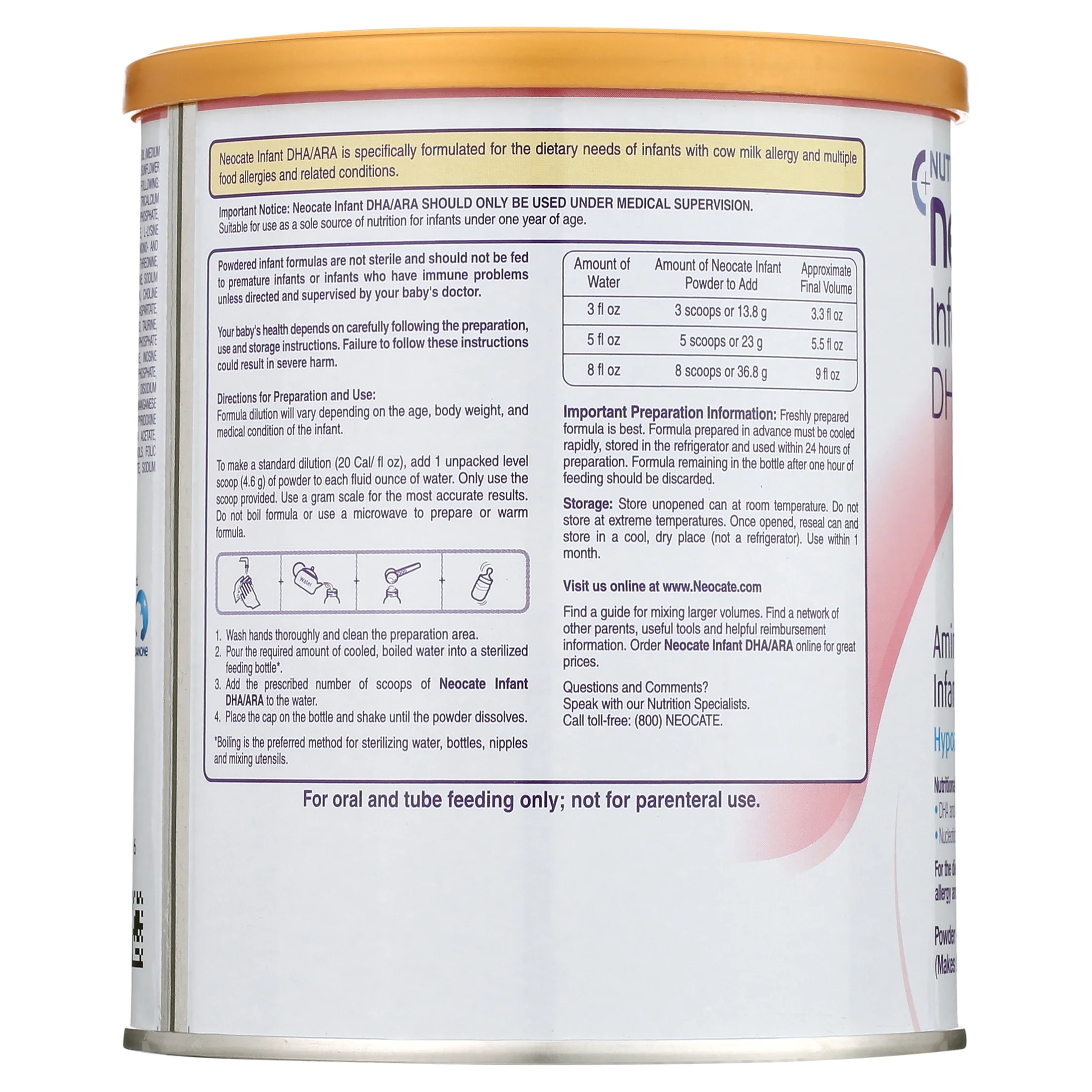 Để đảm bảo dưỡng chất và an toàn cho bé dị ứng đạm sữa bò nặng hoặc rối loạn tiêu hóa, mẹ cần pha sữa Neocate Infant DHA/ARA theo hướng dẫn chính thức từ Nutricia:
