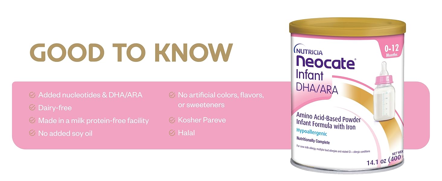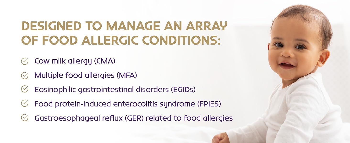 Công nghệ amino acid-based độc quyền Nutricia giúp dễ hấp thụ mà không gây dị ứng, không chứa lactose, gluten, đậu nành – an toàn cho trẻ dị ứng đa thực phẩm. Sản phẩm được chứng nhận Kosher Pareve, Halal, phù hợp dị ứng nặng.