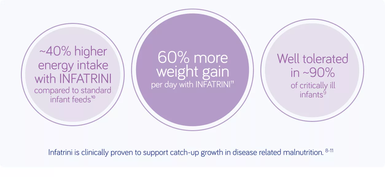 (Hình ảnh: Infographic biểu đồ lợi ích sữa Nutricia Infatrini Powder – Alt: Lợi ích sữa Nutricia Infatrini Powder 400g cho bé suy dinh dưỡng 2025)
