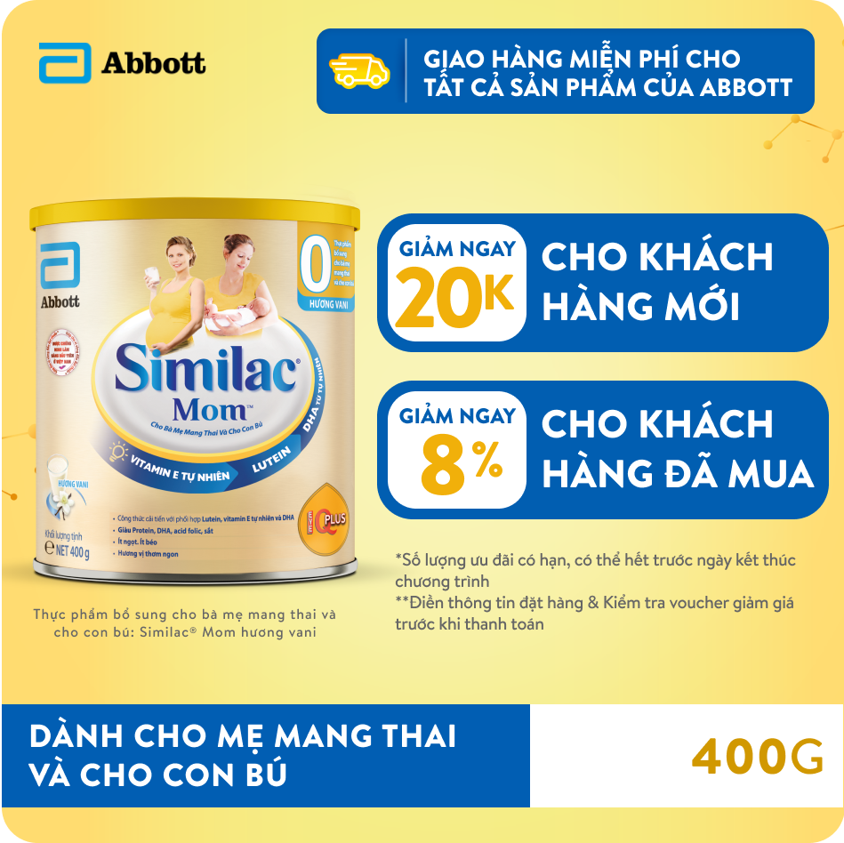 Từ khóa phụ: Lợi ích sữa Similac Mom 400g, sữa cho mẹ bầu IQ Plus, sữa DHA lutein vitamin E tự nhiên, sữa choline acid folic sắt cho mẹ bầu, sữa 24 vitamin khoáng chất thiết yếu.