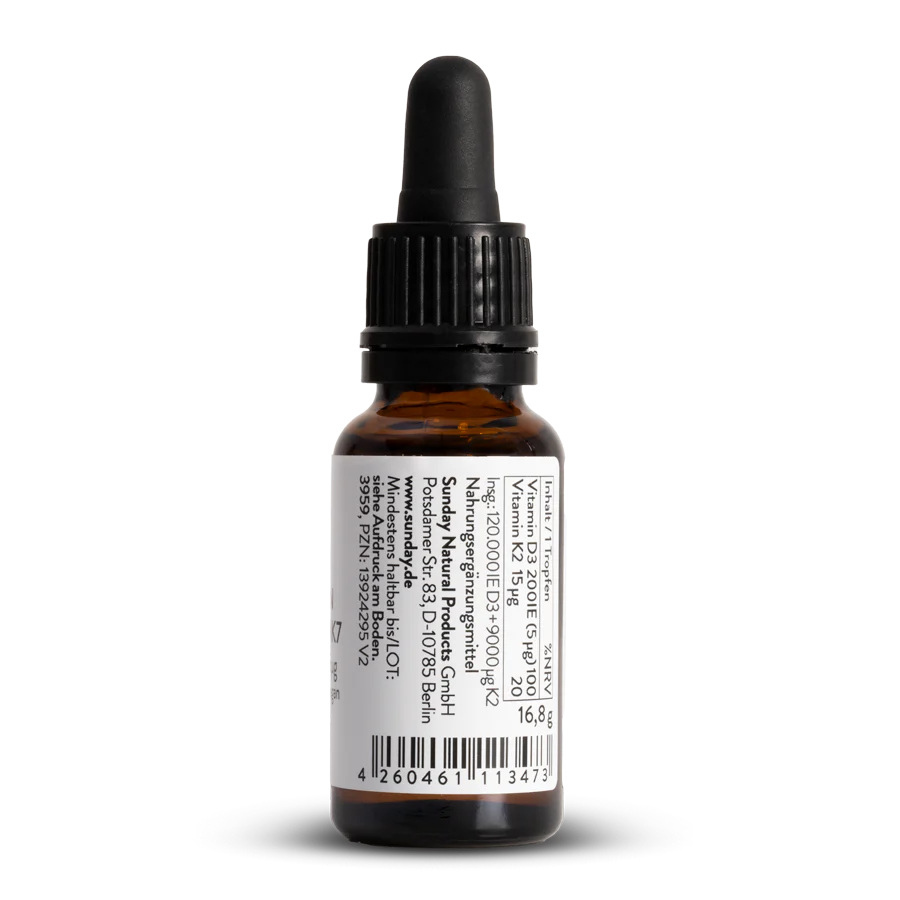 Vitamin D3 + K2 MK7 200 IU + 15µg cho trẻ thuần chay 600 giọt 20ml là giọt bổ sung vitamin D3 K2 cho bé tăng chiều cao cao cấp từ BABY&KIND (Đức, sản xuất theo tiêu chuẩn EU), dành cho bé từ sơ sinh (0+) cần bổ sung vitamin D3 K2 dễ hấp thu, xương chắc khỏe. Với công thức D3 200 IU + K2 MK7 15µg/giọt, dầu dừa MCT organic thuần chay, sản phẩm giúp hấp thu canxi 95%, tăng chiều cao 2-4cm/năm, miễn dịch mạnh, giảm ốm vặt. Vitamin D3 K2 thuần chay BABY&KIND không GMO, hormone, vị trung tính dễ uống, chứng nhận EU organic, nghiên cứu lâm sàng chứng minh, tin dùng bởi hàng triệu mẹ Việt, Đức. Đây là giải pháp vàng cho bé thiếu nắng, hộp 20ml tiện lợi 2025!