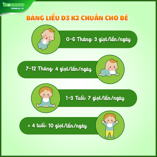 Trẻ sơ sinh 0-6 tháng: 3 giọt / ngày.