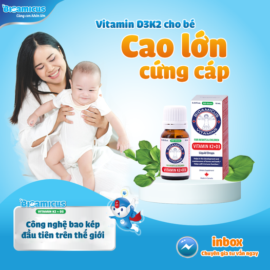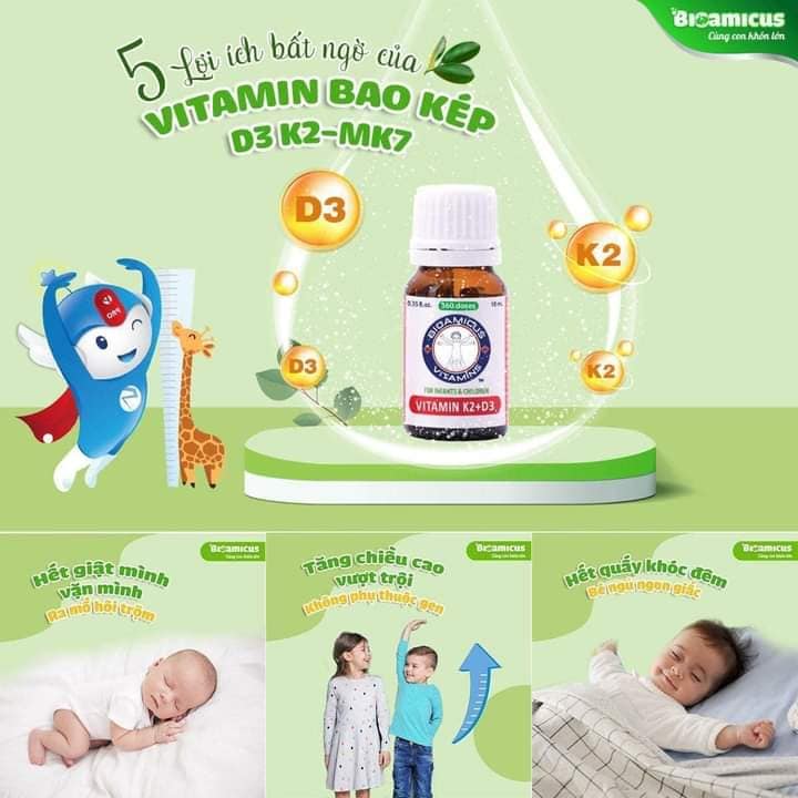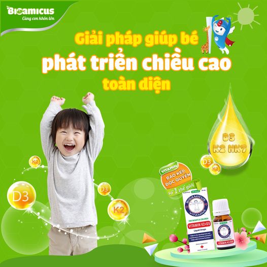 BioAmicus Vitamin D3K2-MK7 là vitamin bao kép độc quyền đầu tiên và duy nhất trên thế giới, chống còi xương, giúp bé tăng chiều cao tối đa