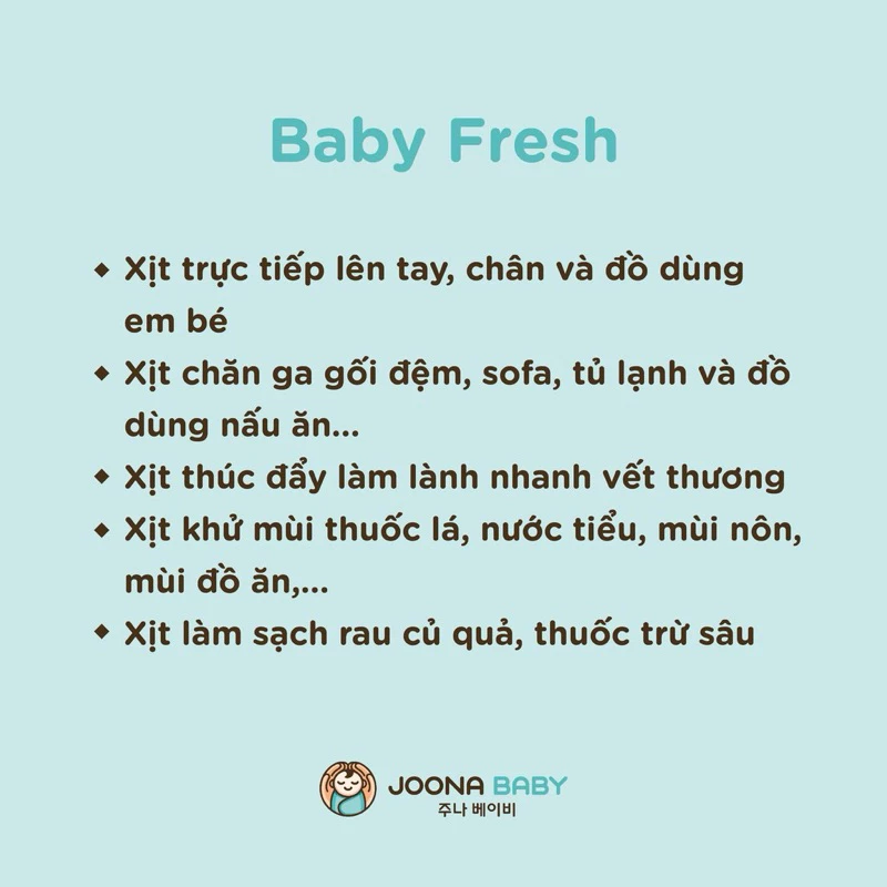 Từ khóa rộng: Xịt khử mùi Baby Fresh có tốt không, xịt khử mùi phòng cho bé giá 2025, cách dùng Baby Fresh khử mùi quần áo, Baby Fresh chính hãng.